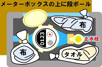 メーターボックスの中に、ビニール袋で包んだ布きれや、タオルなどを入れてください。