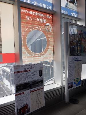 「藤枝の鉄道遺産」とは、(1)新幹線実現の布石となった「特急こだま高速度試験」と(2)日本一長い距離を誇った軽便「静岡鉄道駿遠線」に加えて、明治22年(1889)の藤枝駅開業当時から現存する赤レンガ油庫の3つです。 ★待合室の西側ガラス面(横8m×縦4m)に、藤枝の鉄道遺産のグラフィックシートを掲出★藤枝の鉄道遺産の歴史を解説するパネルを展示