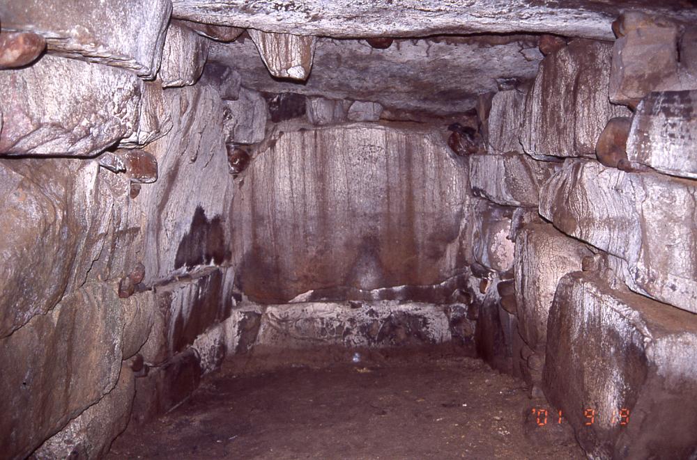 藤枝市史編さん事業に伴って、平成10年(1998)に測量調査、平成13年に石室の実測調査を実施しました。床面は埋まっており、調査で判明した現状では、石室の規模は長さ約5m、幅約2m、高さ約3mです。