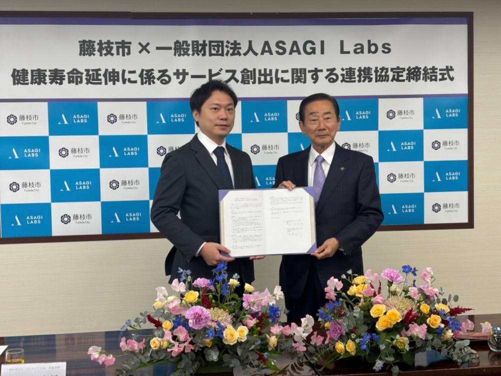 12月8日、一般財団法人ASAGI Labs(アサギラブス)と藤枝市は、藤枝HALEバレー構想による「健康年齢をより若く、健康寿命をより長く」をテーマとした「健康生活産業」の創出のため連携協定を締結しました。