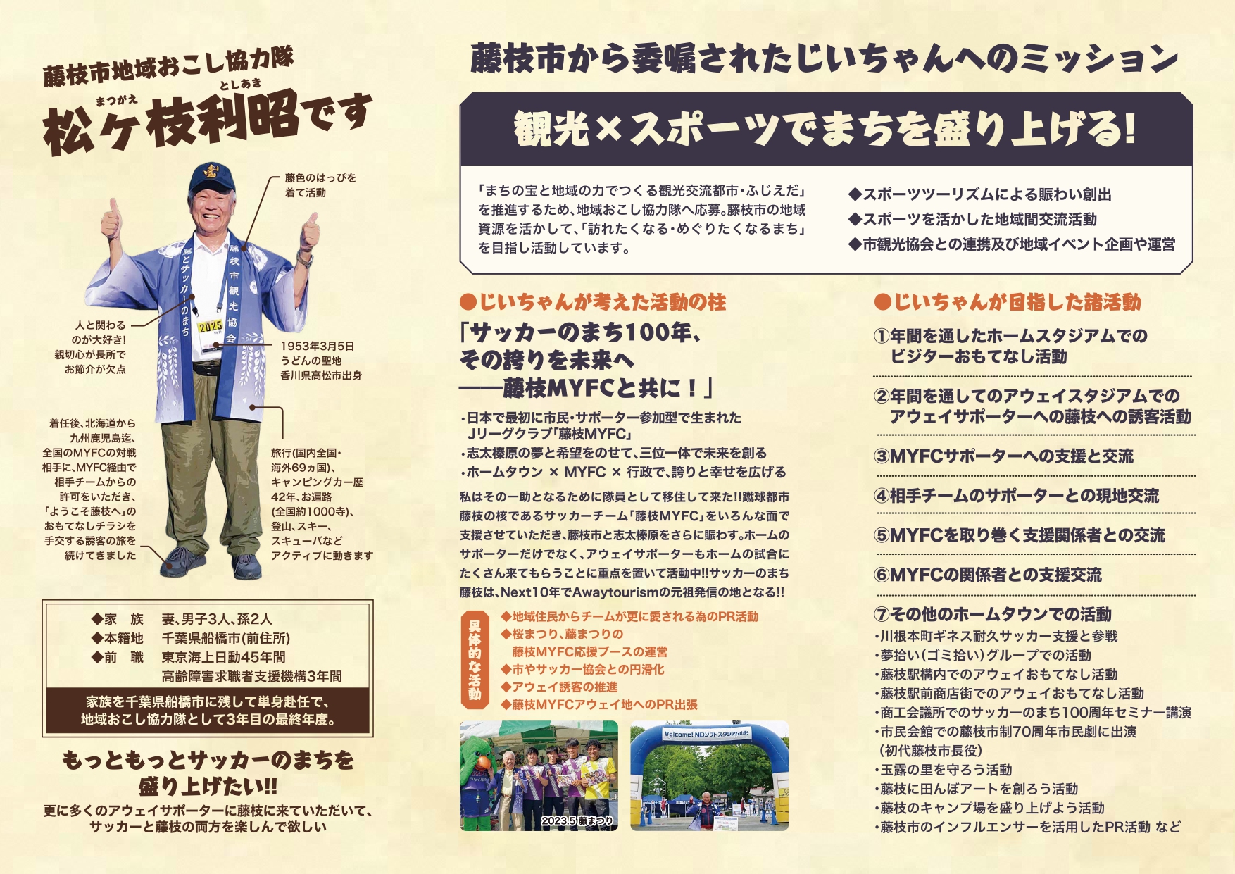 ・全国のアウェイスタジアムに出向きアウェイサポーターに、藤枝の宿泊補助PRちらしと観光案内パンフレットを手交し来藤をご案内