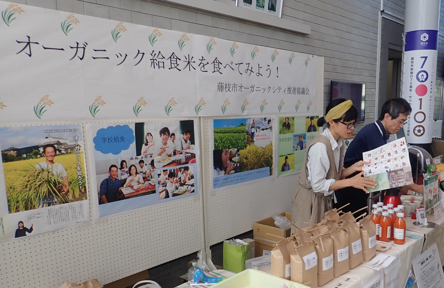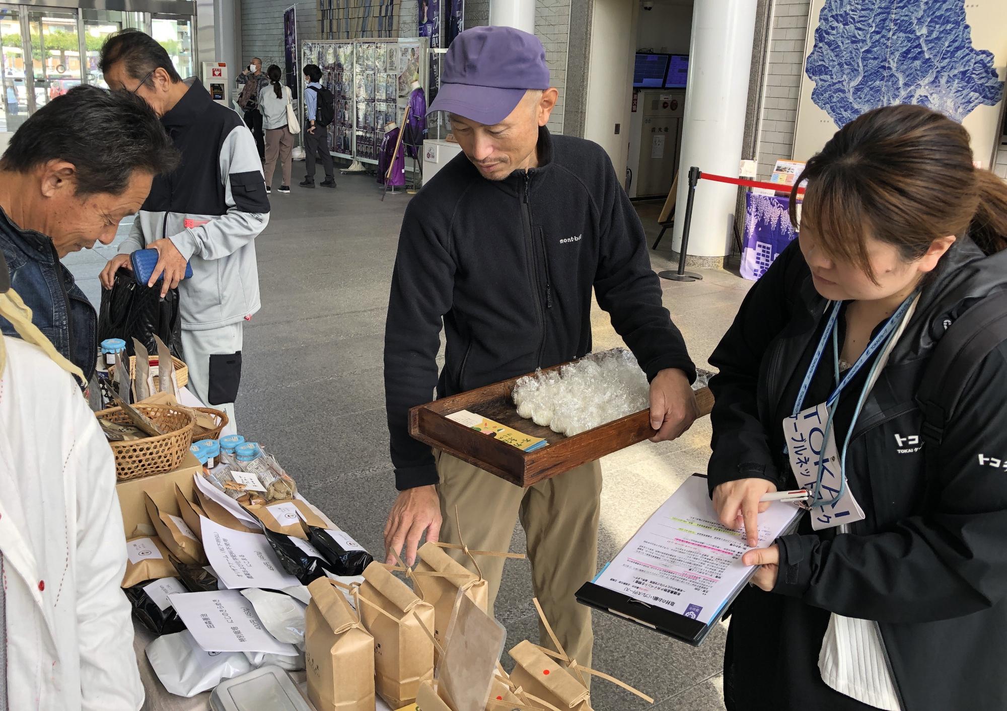 市役所にて有機農産物を紹介する様子