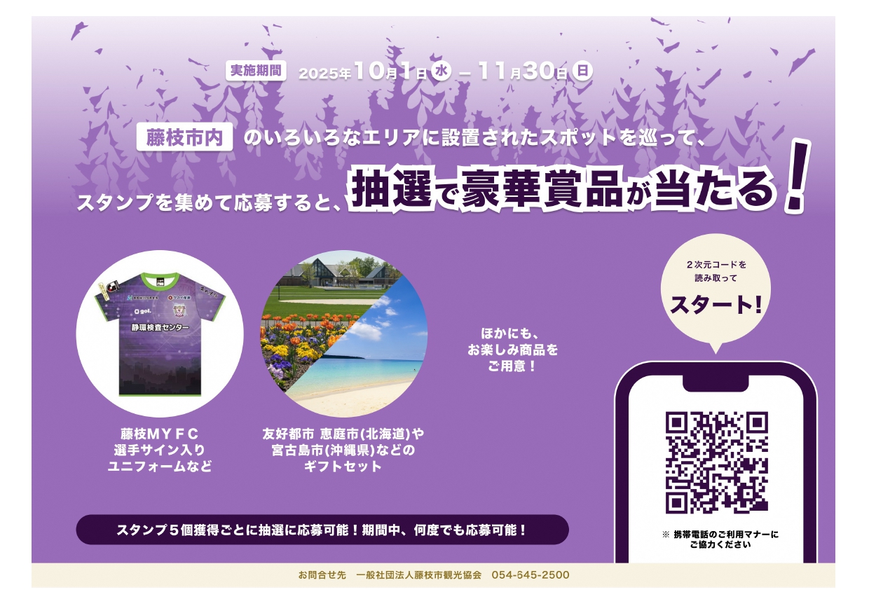 本スタンプラリーのお問い合わせ:一般社団法人 藤枝市観光協会(054-645-2500)
