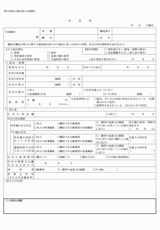 第24条の2 任命権者は、職員から条例第9条の3第1項の規定による届出があったときは、その届出に係る事実を通勤用定期乗車券(これに準ずるものを含む。以下「定期券」という。)の提示を求める等の方法により確認し、その者が条例第9条の2第1項の職員たる要件を具備するときは、その者に支給すべき通勤手当の額を決定し、又は改定するものとする。