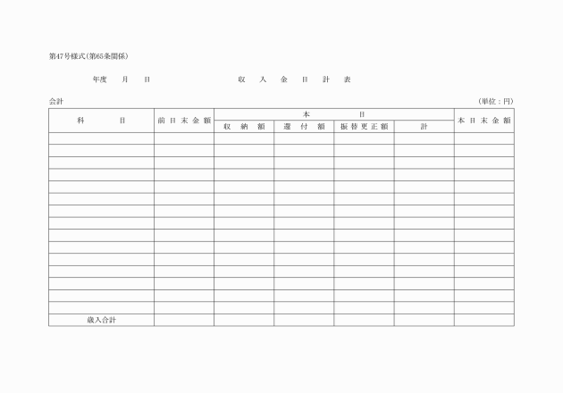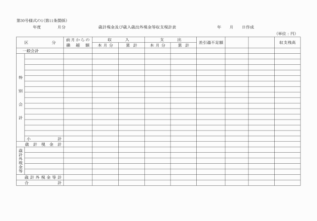 第11条 会計管理者は、毎月、収支現計表(第30号様式)を作成し、翌月15日までに市長に提出しなければならない。